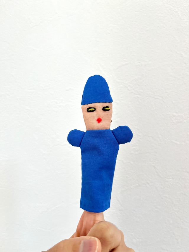 ●finger puppet/村人1 2025.10/30-11/11に東京は吉祥寺、にじ画廊さんで開催した個展「だんだんよくなる」で展示した作品。 なるべく役に立たなくて、つい集めたくなるものを作っていきたいなと思った時に、いくつか所持しているペルーの指人形を思いました。編み物はまったくダメなので布ならと作ってみたところ、まさに理想とする仕上がりに。ブローチにするには少々心もとないピンですが、タグ付け用につけているピンで服やかばん、カーテンなどにつけてみたり、ペン立てに立ってるペンに差してみたり、日々がちょっぴり愉快になるといいです。 〇仕様 ・布製、手縫い ・指まわり約6cm、高さ約10cm、幅約3~5cmほど ・簡単な手縫いでつくっている為、きちんとしていない部分もあります。 ・ブローチとして使用するには心もとないピンですので、承知の上ご使用ください。