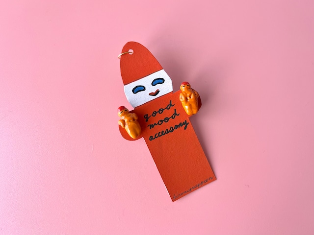 ●finger puppet/村人3 2025.10/30-11/11に東京は吉祥寺、にじ画廊さんで開催した個展「だんだんよくなる」で展示した作品。 なるべく役に立たなくて、つい集めたくなるものを作っていきたいなと思った時に、いくつか所持しているペルーの指人形を思いました。編み物はまったくダメなので布ならと作ってみたところ、まさに理想とする仕上がりに。ブローチにするには少々心もとないピンですが、タグ付け用につけているピンで服やかばん、カーテンなどにつけてみたり、ペン立てに立ってるペンに差してみたり、日々がちょっぴり愉快になるといいです。 〇仕様 ・布製、手縫い ・指まわり約6cm、高さ約10cm、幅約3~5cmほど ・簡単な手縫いでつくっている為、きちんとしていない部分もあります。 ・ブローチとして使用するには心もとないピンですので、承知の上ご使用ください。