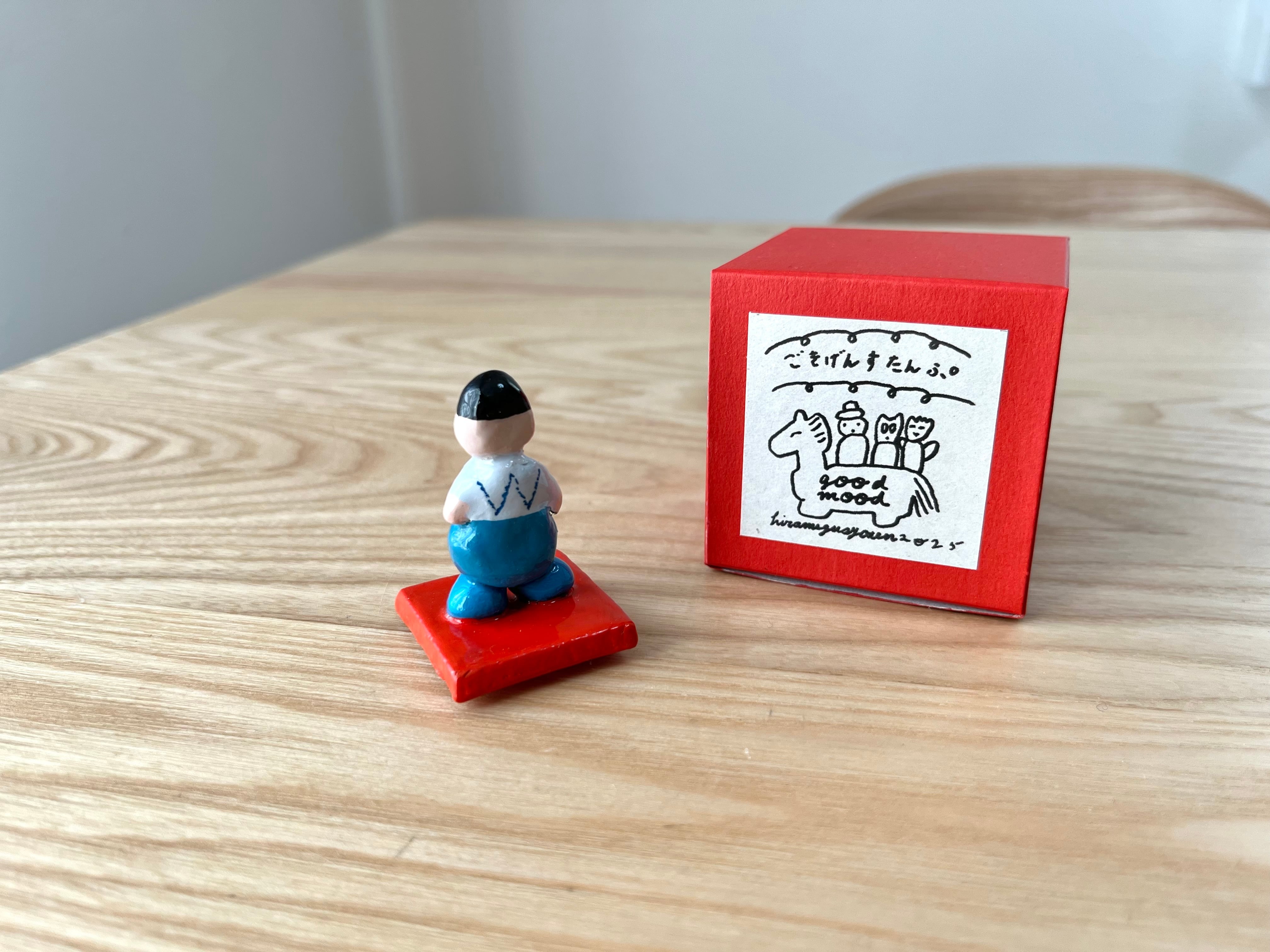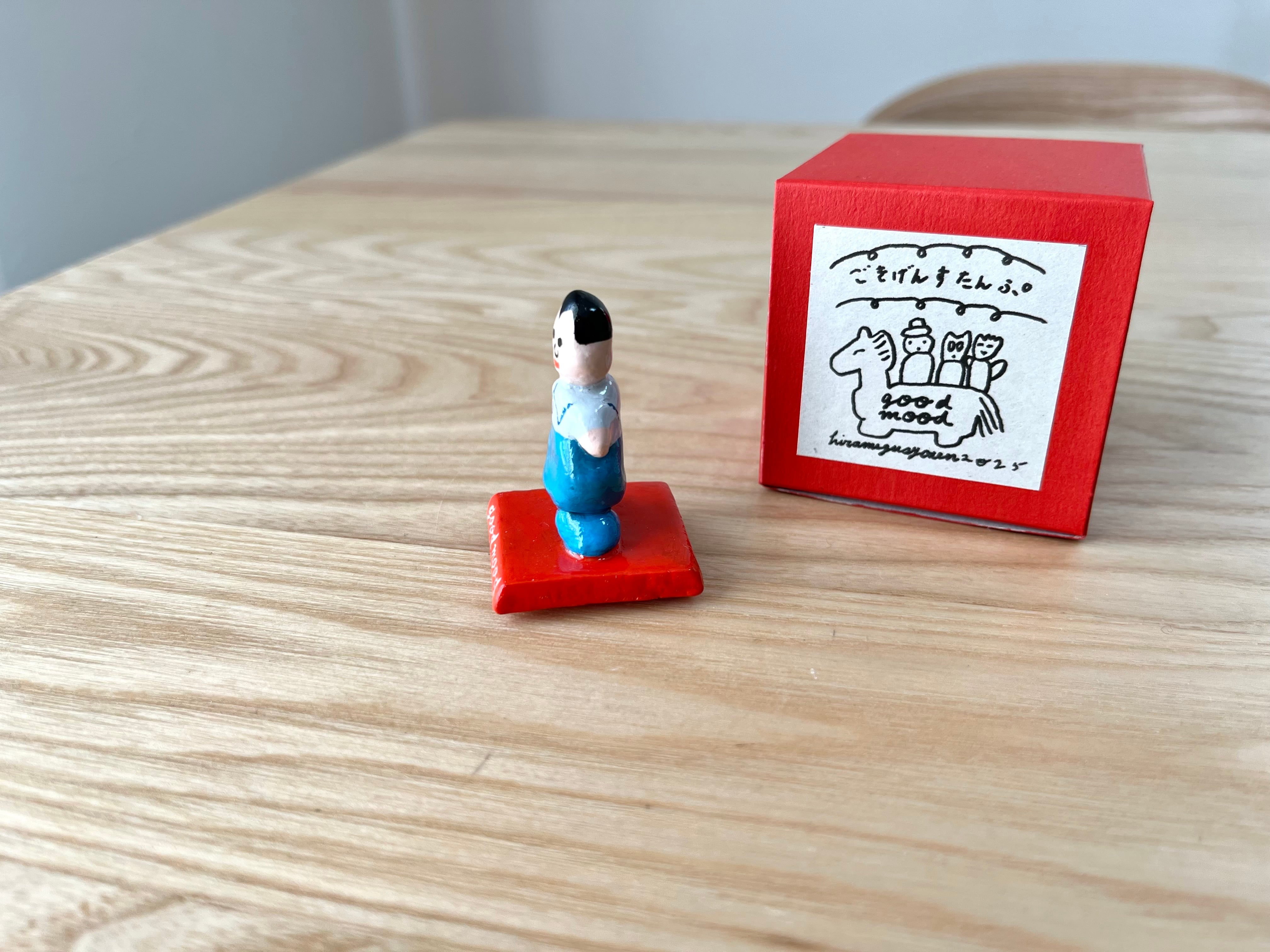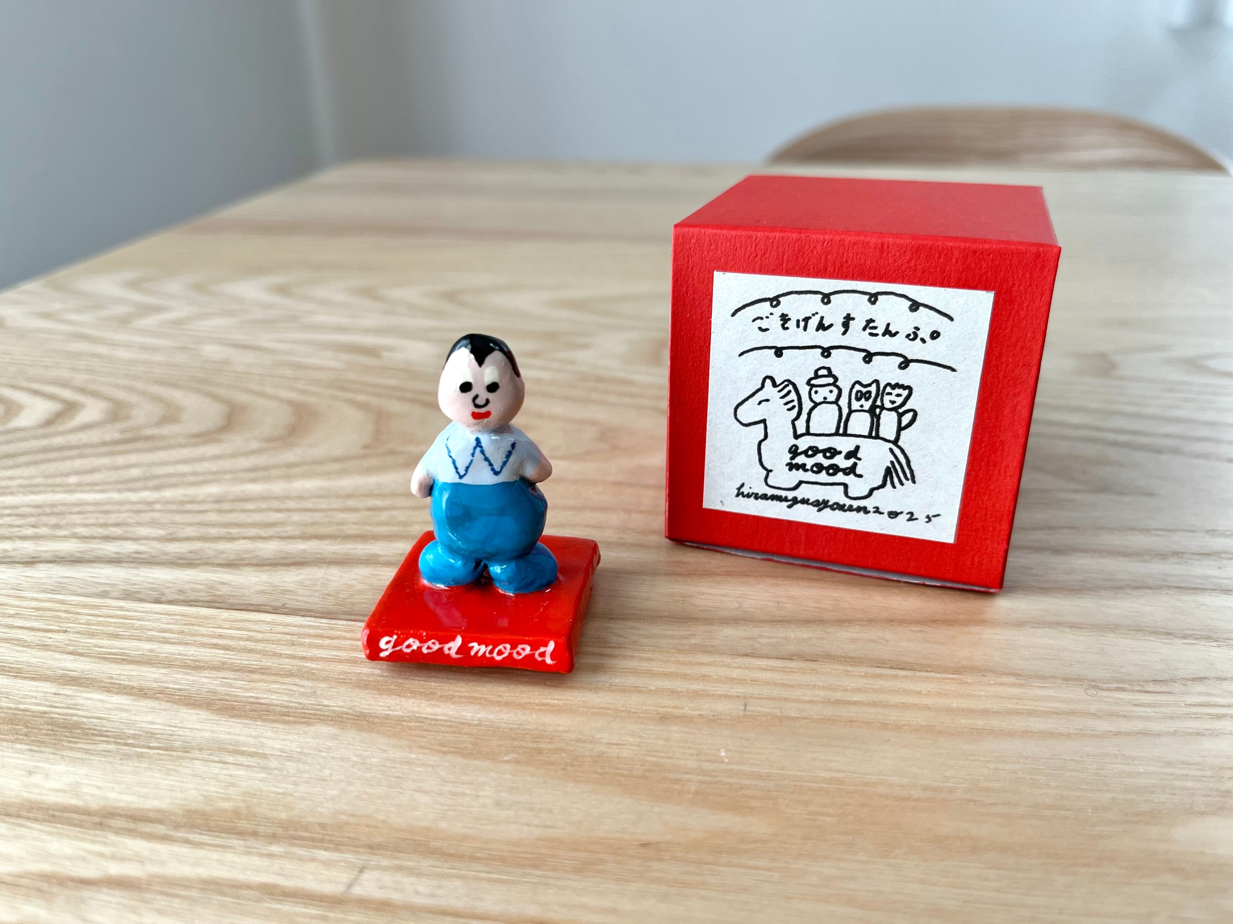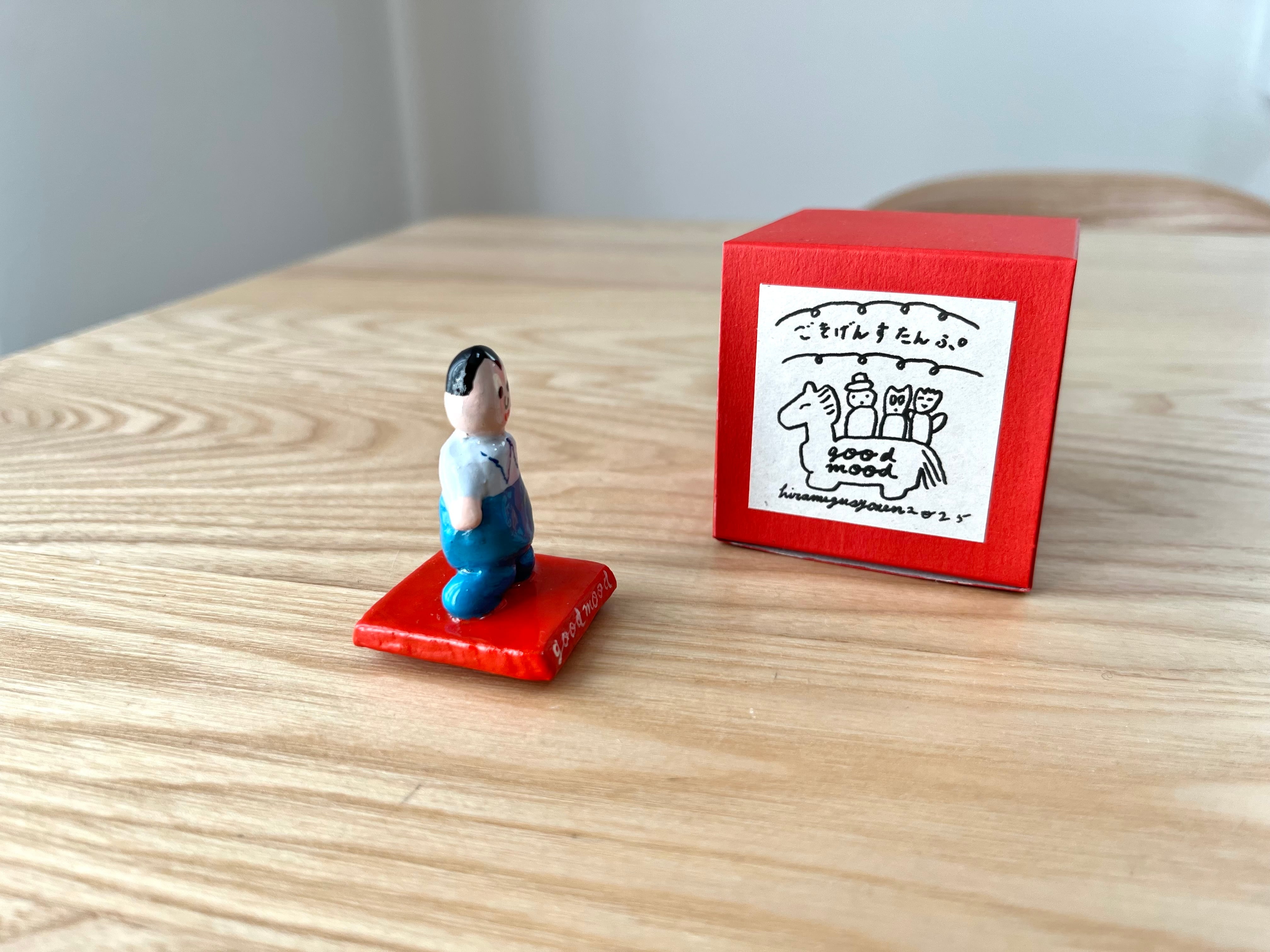 2025.10/30-11/11に東京は吉祥寺、にじ画廊さんで開催した個展「だんだんよくなる」で展示した作品。4年ぶりにスタンプをつくりました。スタンプで押せる柄をそのまま立体にして、その持ち手になっています。これなら引き出しにしまい込まずに、使わない時でも小さなオブジェとして楽しめて、一石二鳥のかわいくてごきげんな代物です。