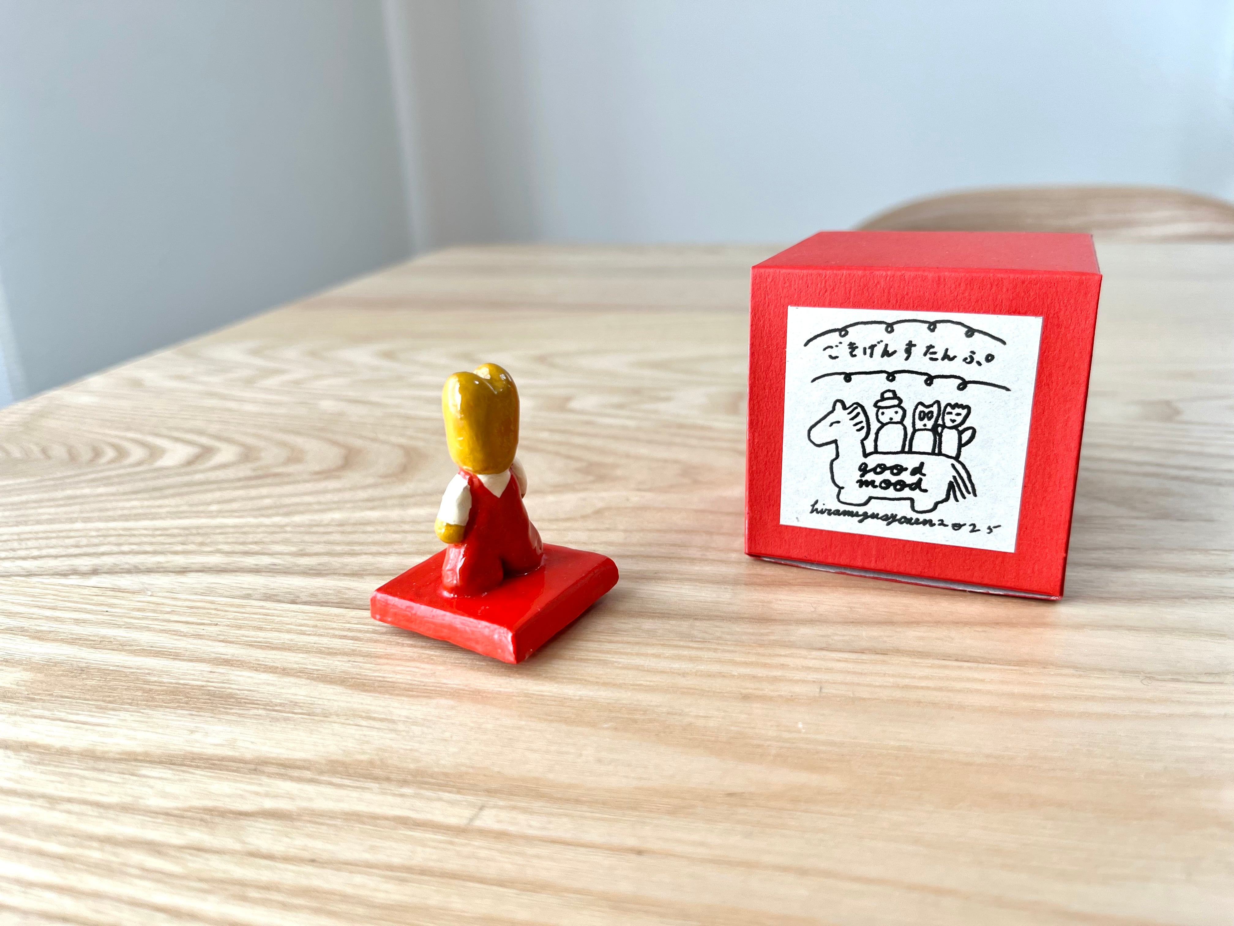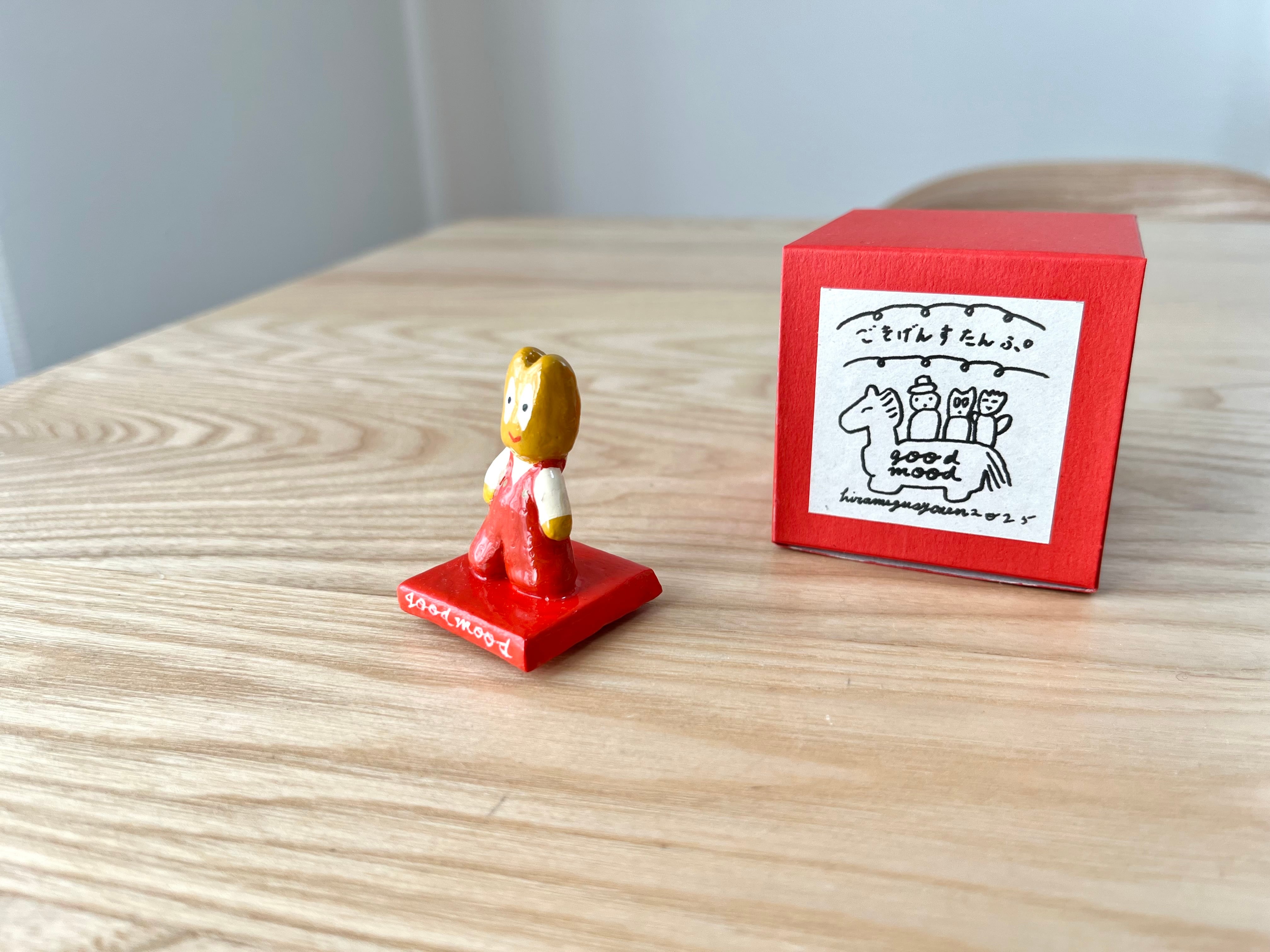 2025.10/30-11/11に東京は吉祥寺、にじ画廊さんで開催した個展「だんだんよくなる」で展示した作品。4年ぶりにスタンプをつくりました。スタンプで押せる柄をそのまま立体にして、その持ち手になっています。これなら引き出しにしまい込まずに、使わない時でも小さなオブジェとして楽しめて、一石二鳥のかわいくてごきげんな代物です。