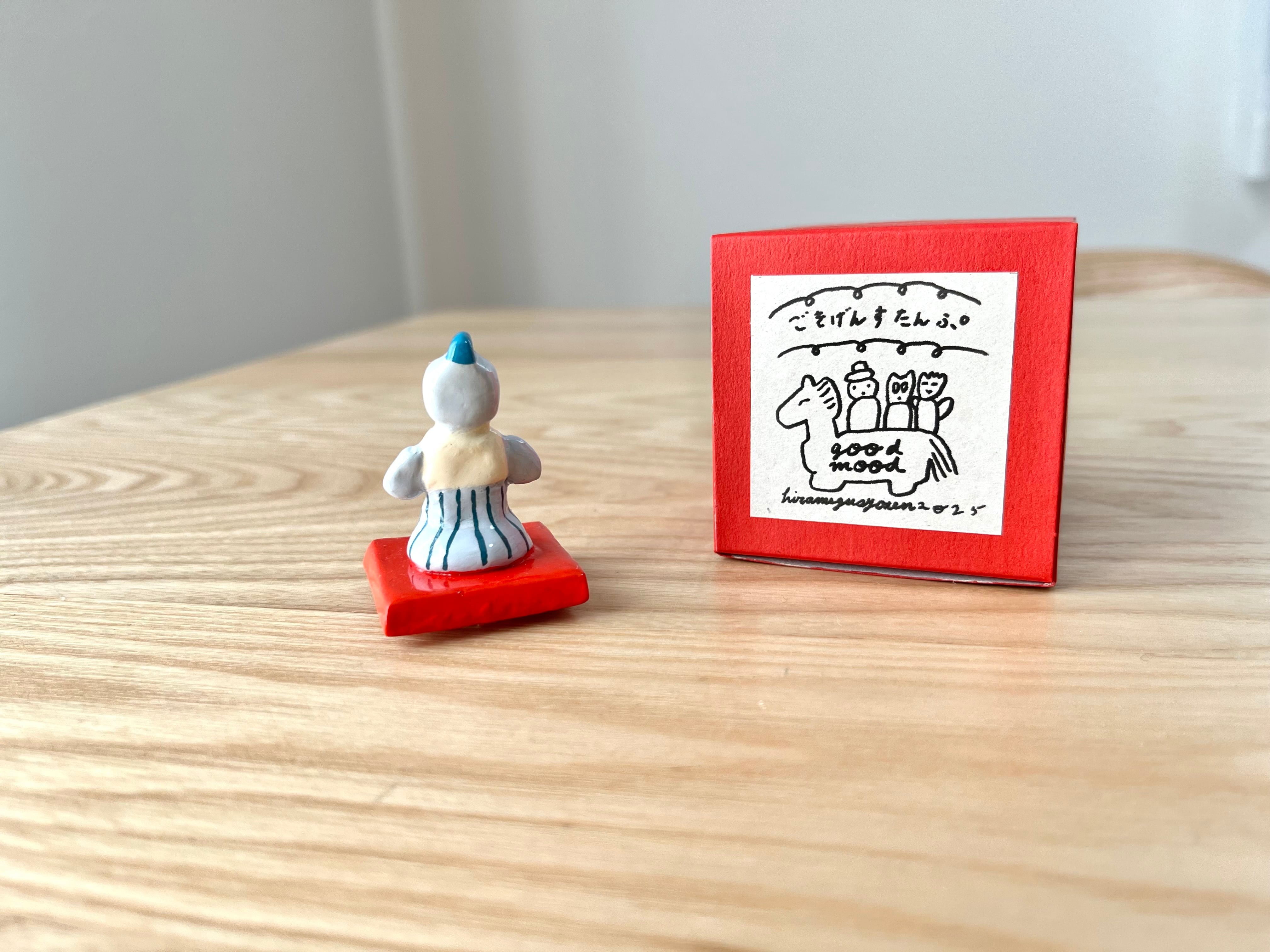 2025.10/30-11/11に東京は吉祥寺、にじ画廊さんで開催した個展「だんだんよくなる」で展示した作品。4年ぶりにスタンプをつくりました。スタンプで押せる柄をそのまま立体にして、その持ち手になっています。これなら引き出しにしまい込まずに、使わない時でも小さなオブジェとして楽しめて、一石二鳥のかわいくてごきげんな代物です。