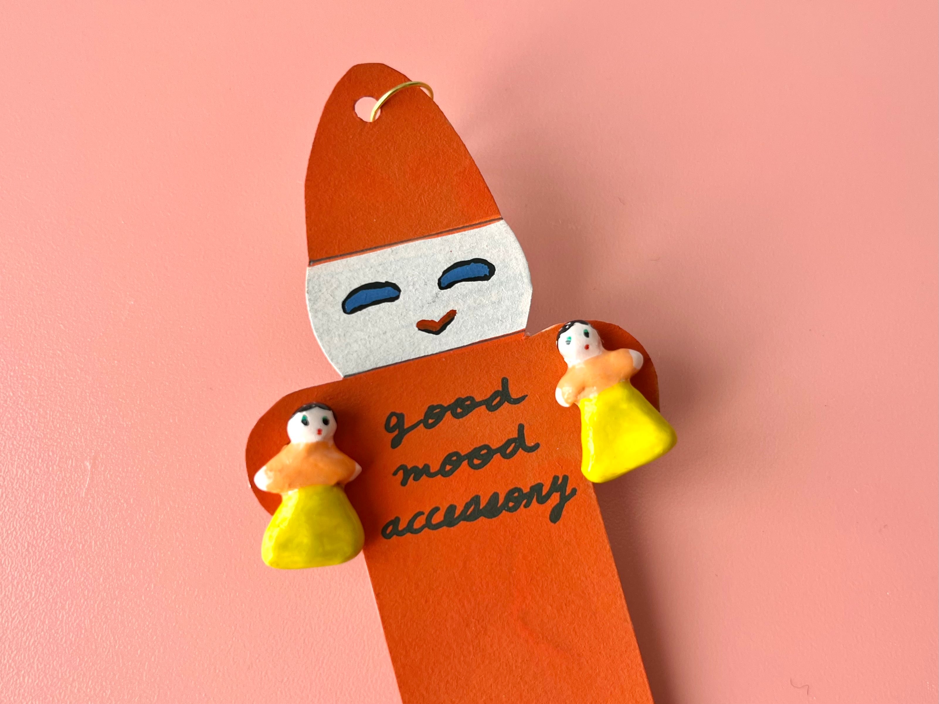 ・素材:ピアスの金具、粘土、アクリル絵具、樹脂